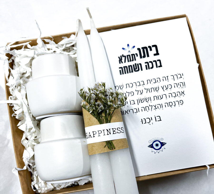 מתנה קלאסית לבית , פמוטים, נרות וברכת הבית ₪80 מתנה קלאסית לבית , פמוטים, נרות וברכת הבית צמד פמוטי קרמיקה מקסימים , בגובה 8 ס"מ צמד נרות לבנים בעבודת יד גלויה מעוצבת עם ברכת הבית אפשרי גם ממותג כמתנה לעובדים או אירוע, לקבלת הצעה צרו קשר 0505990088 קיים במלאי כמות של מתנה קלאסית לבית , פמוטים, נרות וברכת הבית הוספה לסל מוצרים קשורים צפייה מהירה צפייה מהירה כרטיסי ברכה לאירועים ₪49 הוספה לסל צפייה מהירה צפייה מהירה מחברת מעוצבת התחלות ₪39 הוספה לסל צפייה מהירה צפייה מהירה כרטיסי ברכה חמסה ועין ₪49 הוספה לסל צפייה מהירה צפייה מהירה מתנה נשית תשמחי – מחברת תשמחי , סבון לב תודה ועט ₪75 הוספה לסל
